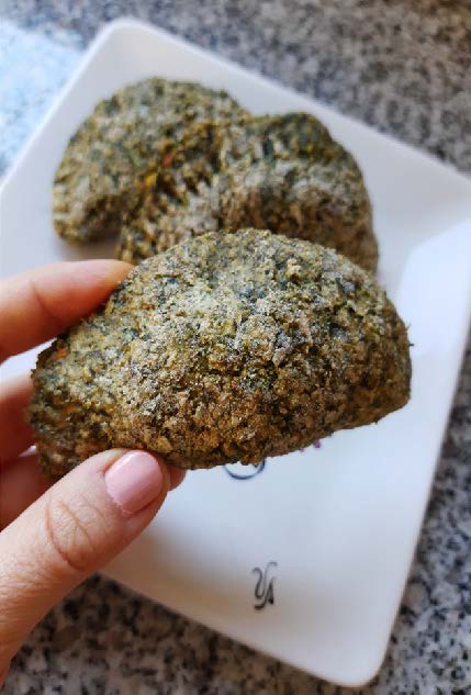 • Procesar la avena instantánea e incorporar el polvo de hornear y la espinaca cocida y continuar procesando.