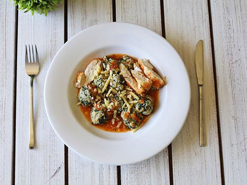 • Llevar la espinaca salteada a un bol y agregarle la ricota, el huevo, la avena, sal, pimienta y nuez moscada. Formar bolitas con la mano y cocinarlas en agua hirviendo de 3 a 4 minutos.